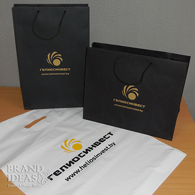 - На пакеты, изготовленные из сортов дизайнерской бумаги, рекламное изображение наносится методом шелкографии (золото, серебро, белая или цветная краска) или тиснения (золото, серебро, конгрев).